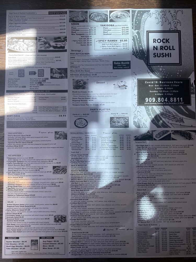 Welcome to Rock N Roll Sushi, where the vibrant world of sushi meets contemporary flair. Located at 5244 N University Pkwy Ste B, San Bernardino, CA, this lively sushi bar provides a casual dining experience marked by moderate noise and a relaxed dress code.
